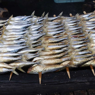あぶり作りは熱さと煙が目に染みるのとの戦いで、丁寧に竹串に刺されたサバやムツを1時間から2時間かけて燻していく大変な作業でした。それでも魚が少なく作業がお昼頃で終わってしまうのですが、多い時は夕方の4時ごろまで作り続けるそうです。今年は魚の水揚げが少なく思うように作れないとお話ししてくださいました。